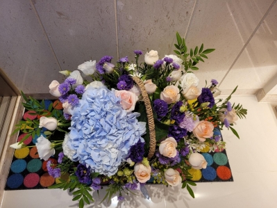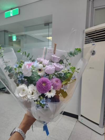 꽃은 너무 옛날스타일이고 사정상 꽃바구니를 문앞에 놔달...