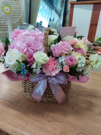 분홍장미계절꽃다발