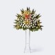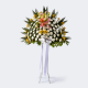 순수 계절 꽃과 싱싱한 국화로 제작된 오브제 화환입니다.