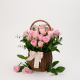 행복한 미소는 분홍장미와 그린소재로 구성된 꽃바구니 입니다.