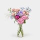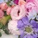 콜롬비아 골든볼, 다알리아, 부바르디아, 라넌큘러스, 수국, 아스틸베, 아이리스, 안개, 카네이션, 카라, 튤립, 레몬잎