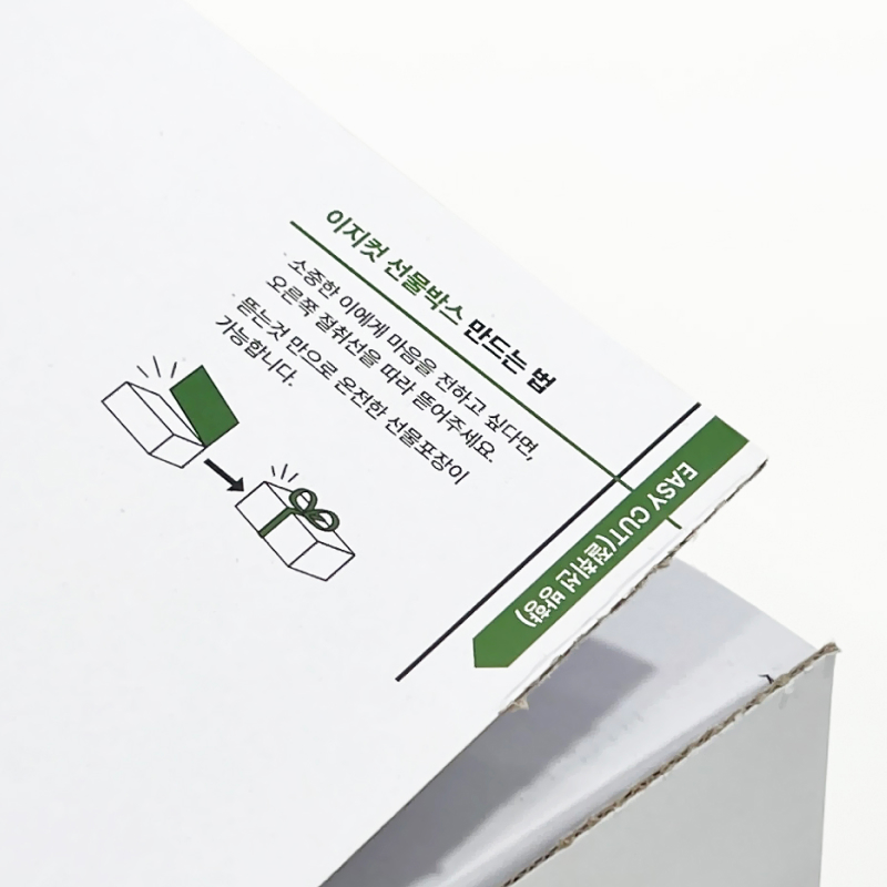 박스 윗면에 위치한 이지컷을 뜯으면 간편한 선물포장 완성!