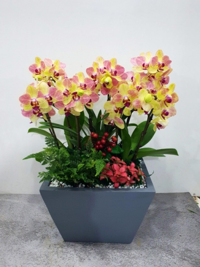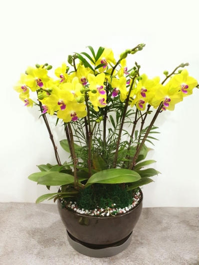 썬셋클래식 3호 고급형 배송 사진 입니다. 전국꽃배달서비스 꽃집청년들 1800-7879 #노란색 서양란 #썬셋 #사기화분 #화려한 식물 #축하선물