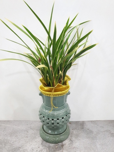 황금채홍 청자투각 배송 사진 입니다. 전국꽃배달서비스 꽃집청년들 1800-7879 #동양란 #승진용 선물 #무늬있는 동양란 #고급화분 #祝昇進(축승진)