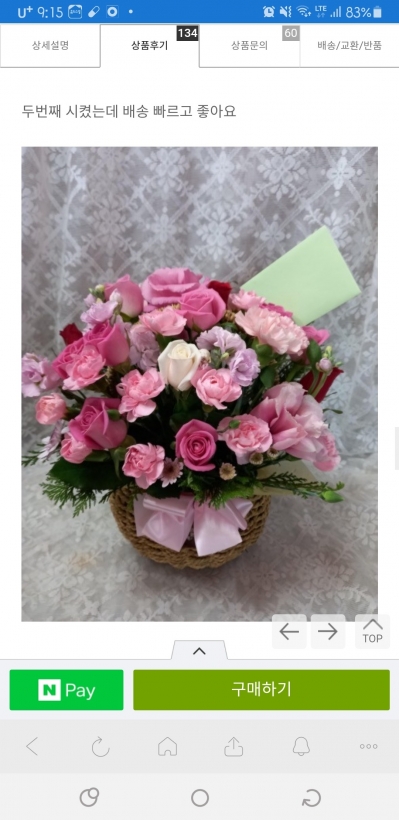방금주문했습니다 상품평이 좋아 어머니 생신에 배송요청드리니 꼭~! 핑크색상으로 밝고 환하게 만들어주세요 번창하세요~^^ 맘에드는 후기에서 캡쳐하여 올립니다 수고하세요~!!^^