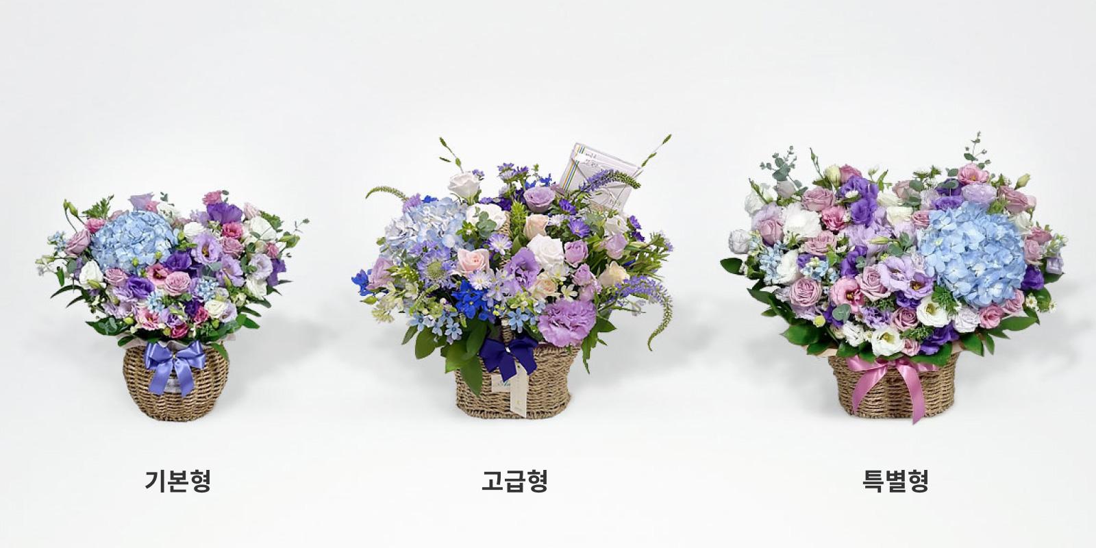 - 기본형 → 고급형 → 특별형 순으로 '송이 수'가 늘어나 더 풍성하고 고급스럽게 제작합니다.
