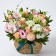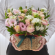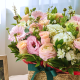 은은한 파스텔 핑크와 크림 톤을 중심으로 구성한 사랑스러운 꽃바구니