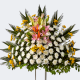 순수 계절 꽃과 싱싱한 국화로 제작된 오브제 화환입니다.