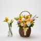 향긋한 봄을 알리는 후리지아와 화사한 계절꽃을 곁들인 꽃바구니입니다.