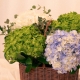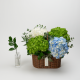 수국 꽃바구니는 수국, 그린소재로 구성된 꽃바구니입니다.