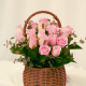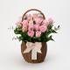 행복한 미소는 분홍장미와 그린소재로 구성된 꽃바구니 입니다.