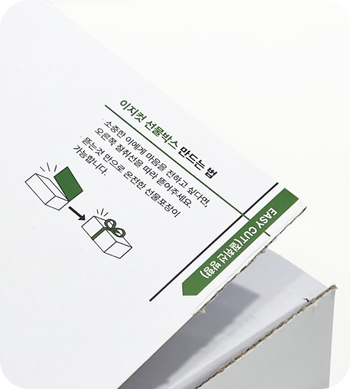 박스 윗면에 위치한 이지컷을 뜯으면 간편한 선물포장 완성!