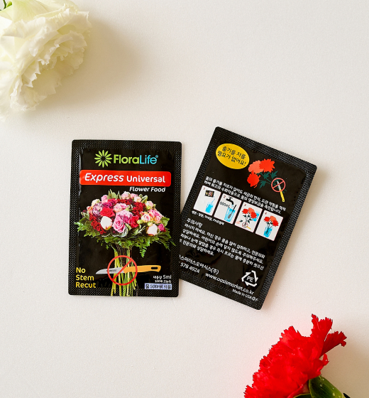 플라워푸드는 화병 내 세균 번식을 막고 영양분을 공급해 꽃을 싱싱하게 유지해 줍니다.