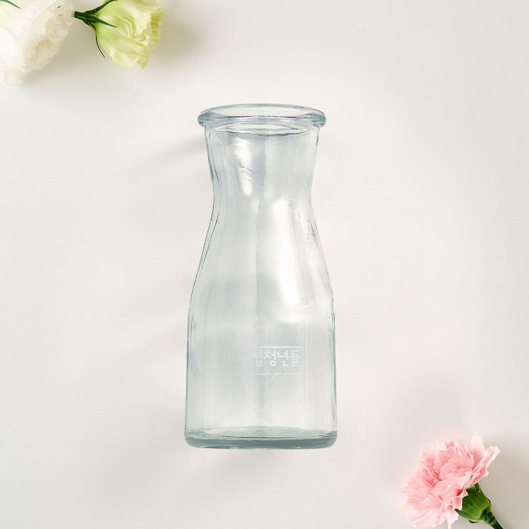 꽃을 더 아름답게 보이도록 자체 디자인한 유리 화병입니다.